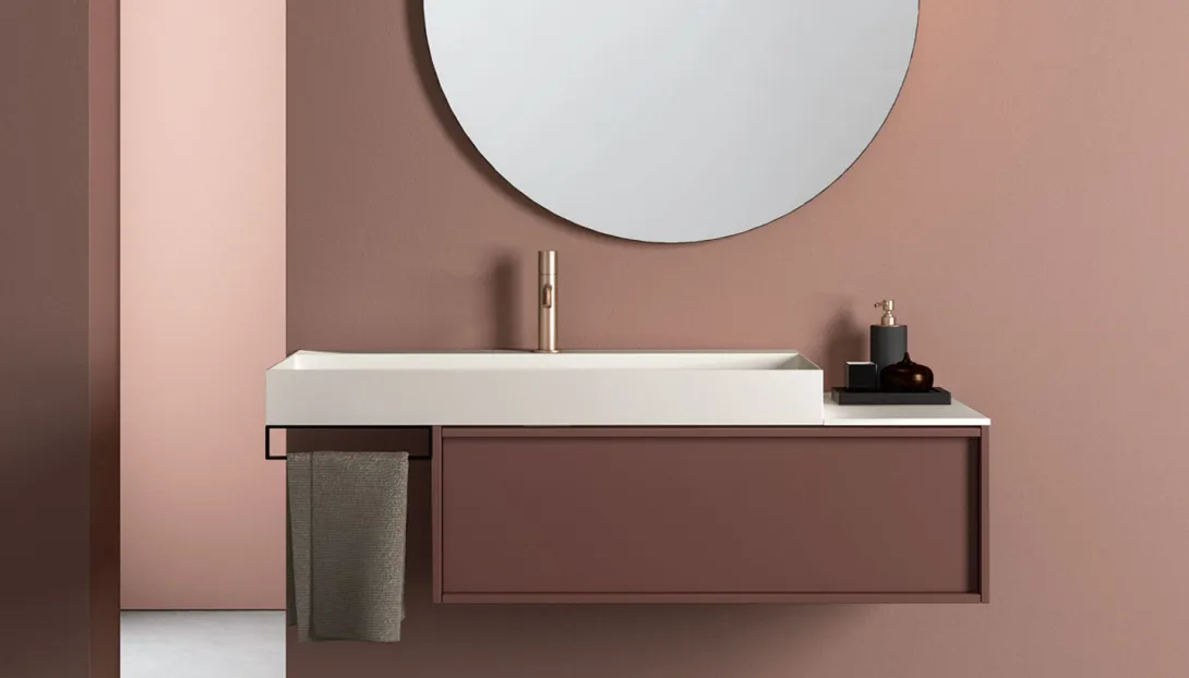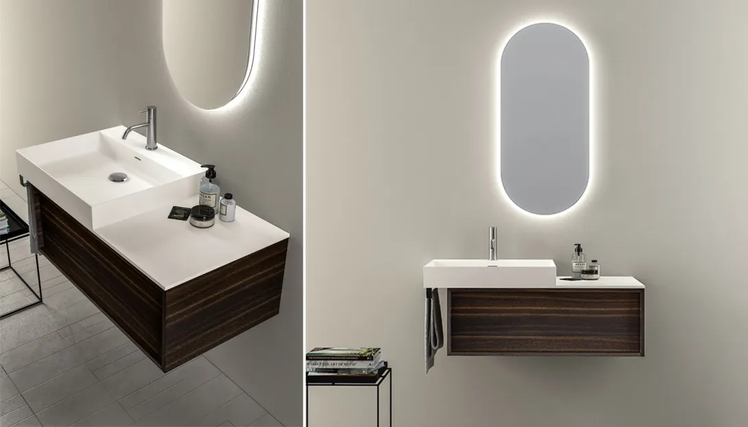 Verdeckte Griffe, ergonomische Details und hochwertige, feuchtraumgeeignete Materialien verleihen Loop seine besondere Substanz.