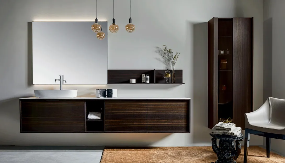 Loop ist ein System hängender Badmöbel mit elegantem, zeitlosem Design. Die Proportionen sind so entwickelt, dass sie großzügigen Stauraum bieten, bei einer Tiefe, die optimal auf moderne Wohn- und Badkonzepte abgestimmt ist.