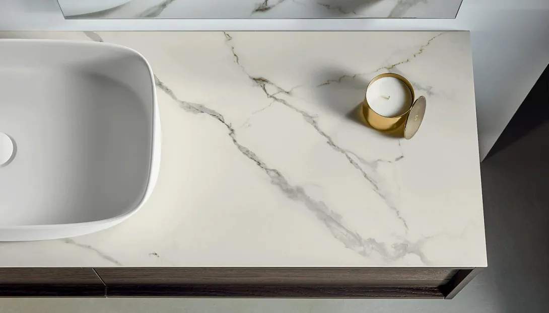 - Große Auswahl an Waschtischplatten mit integriertem oder aufgesetztem Waschbecken.